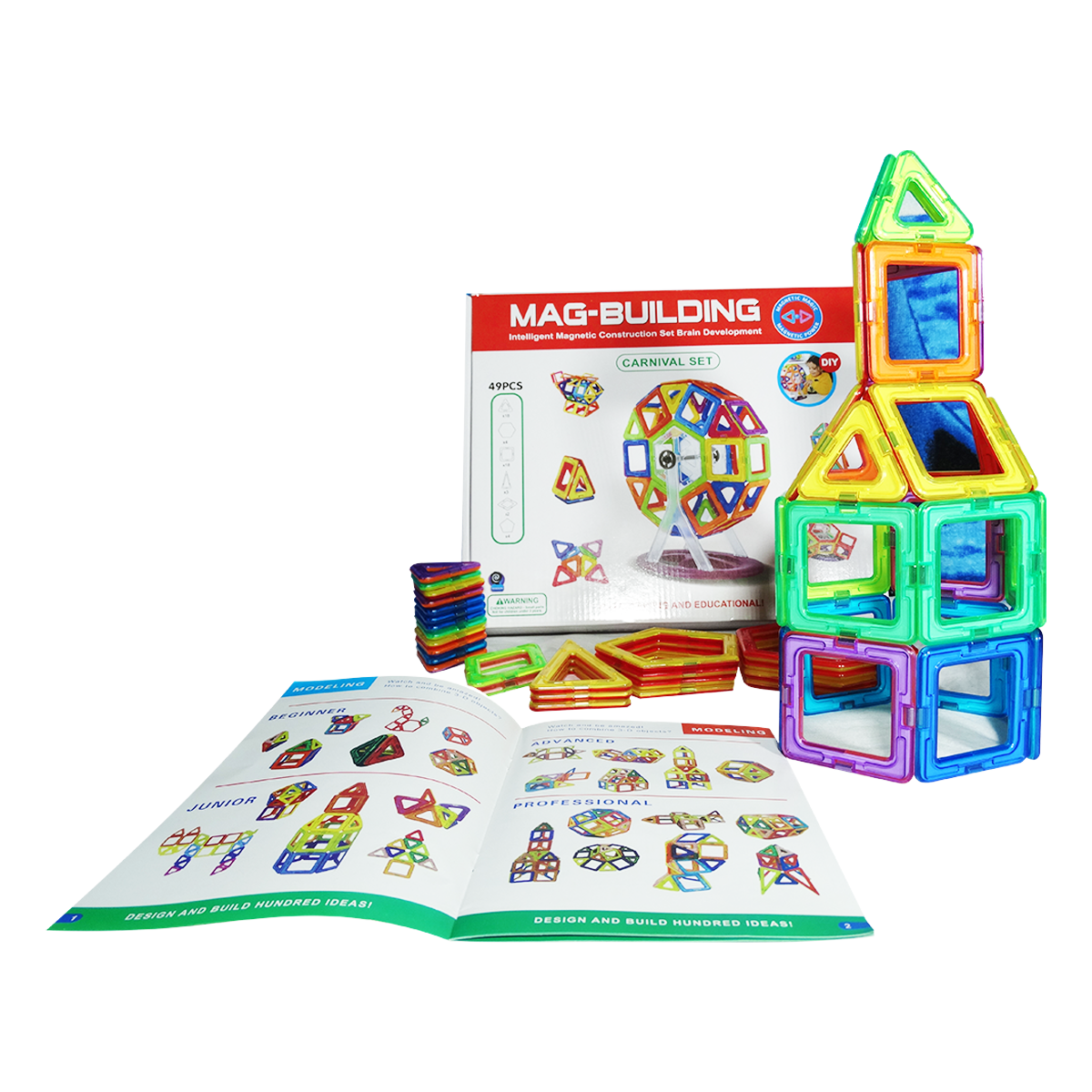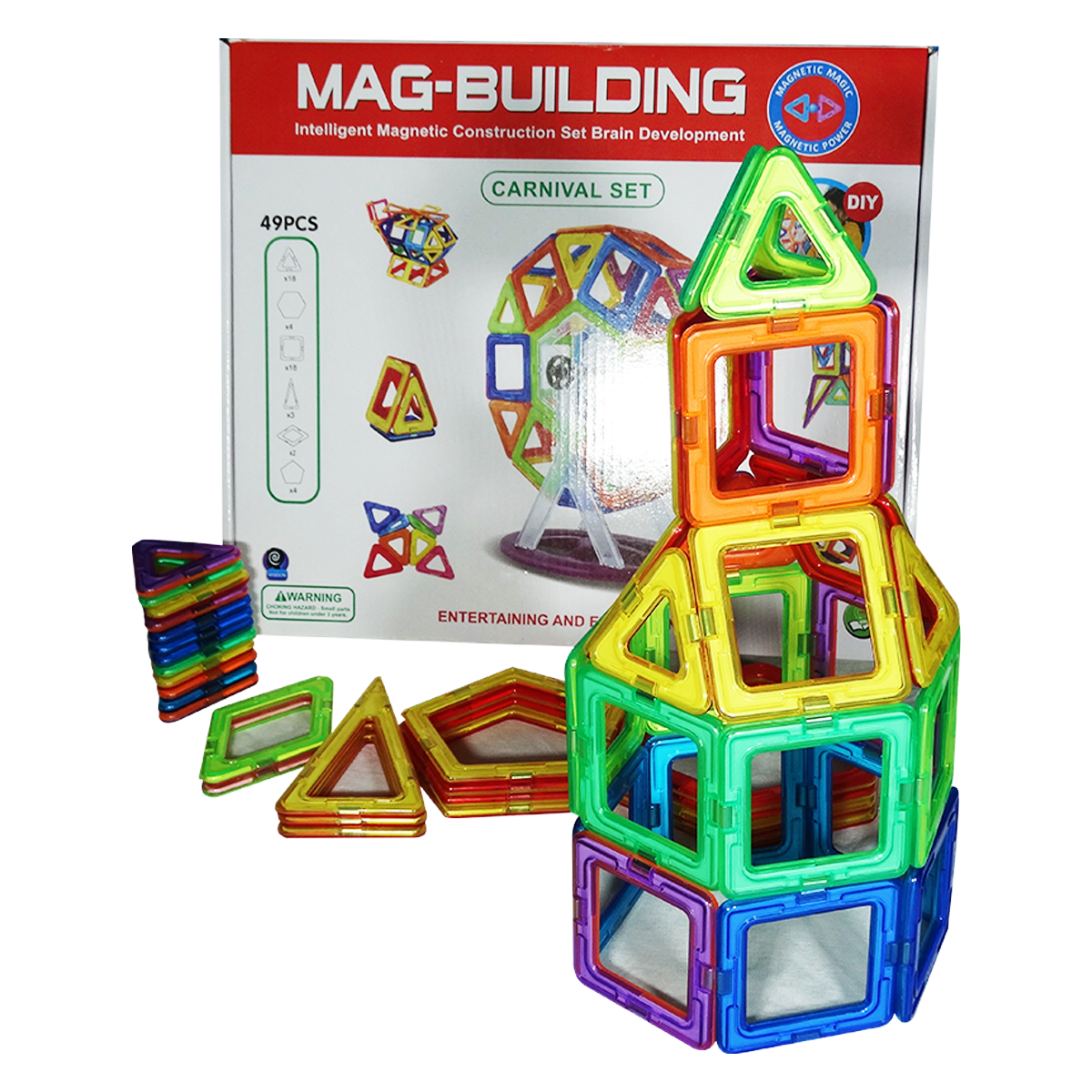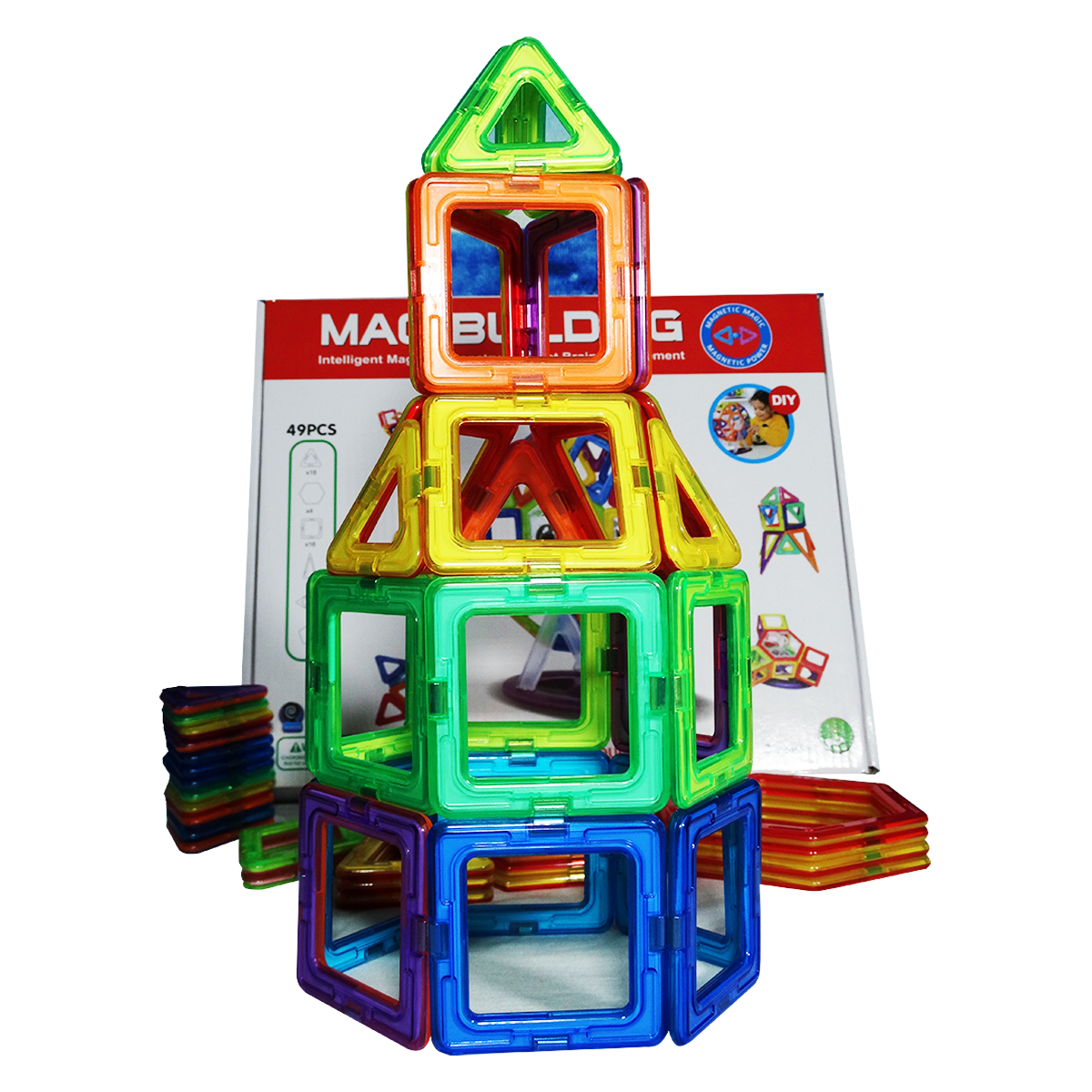 Mag-Building ayuda a los niños a crear formas geométricas simples y complejas en matemáticas como prismas, tetraedros y muchas más por sí mismos o con la ayuda de amigos. A medida que los niños juegan, adquieren simultáneamente nuevas habilidades matemáticas.